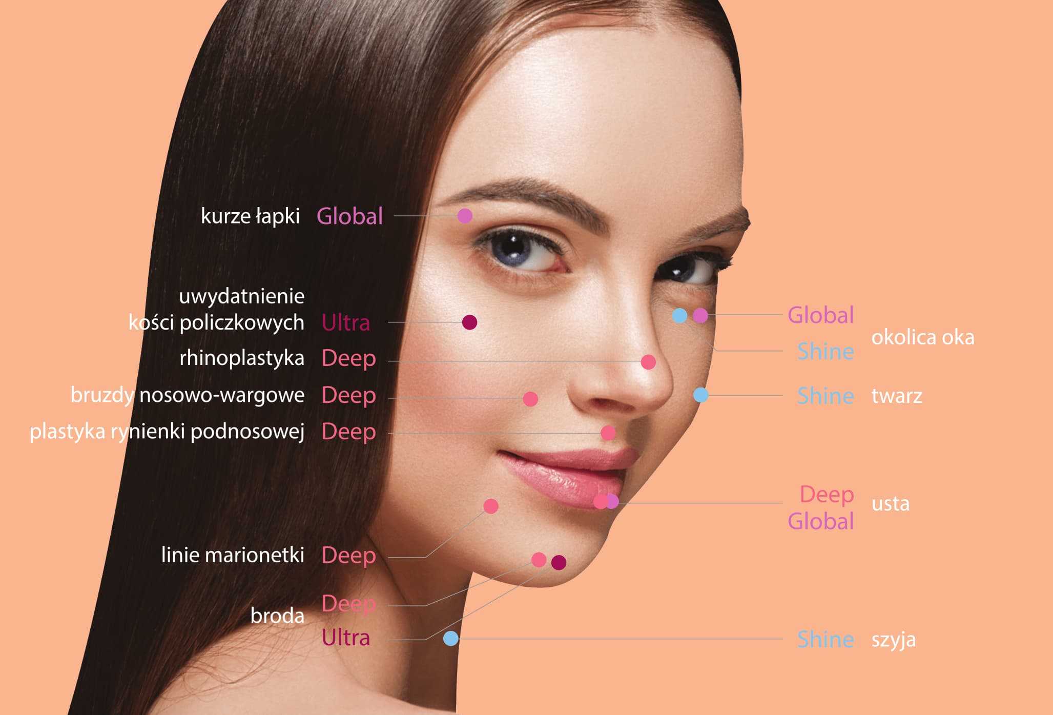 Wypełniacz AESSOA GLOBAL przeznaczony jest do redukcji powierzchownych i umiarkowanych zmarszczek, korekcji kurzych łapek oraz powiększania ust.