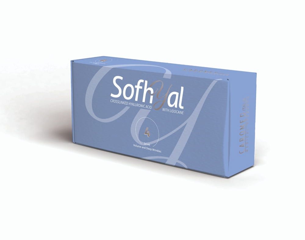 Sofhyal zawiera usieciowany kwas hialuronowy, pochodzenia niezwierzęcego. Jest to sterylny, apirogenny, pozbawiony lateksu, przezroczysty, wiskoelastyczny i biodegradowalny żel. Lidokaina w składzie wprowadza element wygody, eliminując potencjalne dyskomforty i zapewniając płynny przebieg procedury.