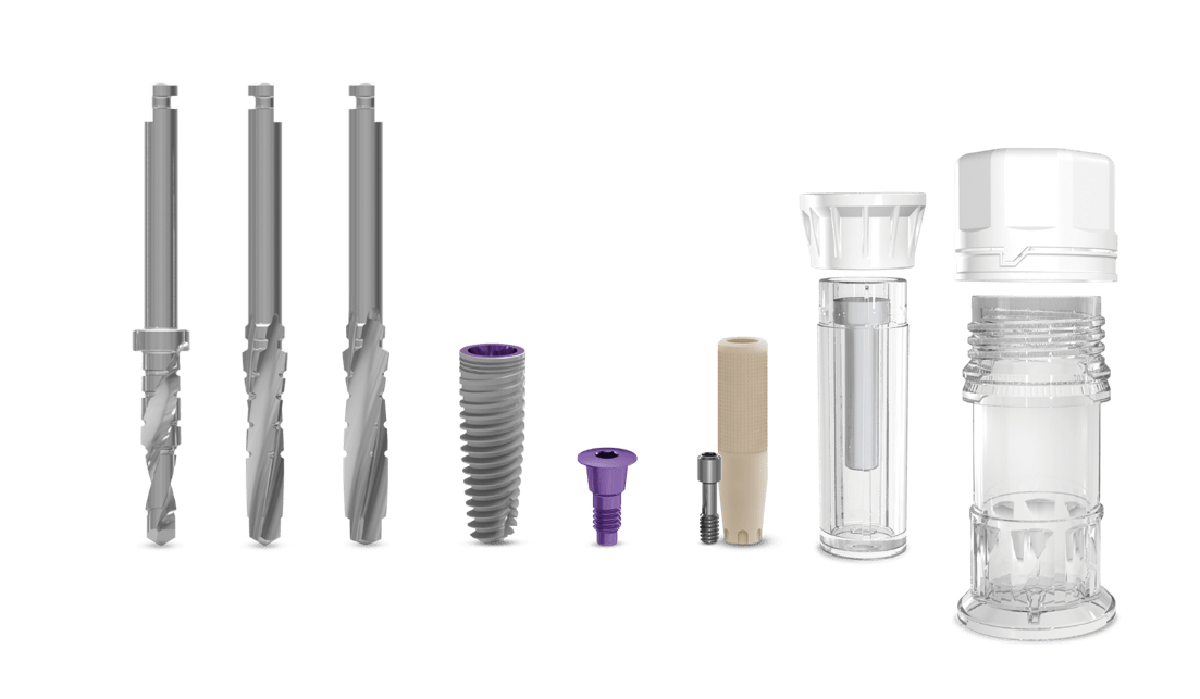 Zestaw wierteł w każdym opakowaniu: MIS XD zapewnia wiertła do pełnej procedury w każdym pakiecie implantów. Są jednorazowego użytku i zostały zaprojektowane z myślą o optymalnej kompatybilności implant-wiertło i wysokiej stabilności pierwotnej, zapewniając jednocześnie bezpieczeństwo procedur i umożliwiając lekarzom optymalizację wyników klinicznych. Każdy implant C1 XD jest dostarczany ze śrubą zamykającą, filarem tymczasowym oraz wiertłami XD.