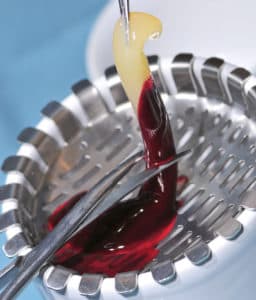 - czerwona warstwa RBC – jest lepką, gęstą, bogatopłytkową masą