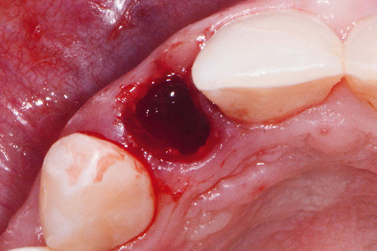Sytuacja kliniczna 3 miesiące po ekstrakcji zęba.