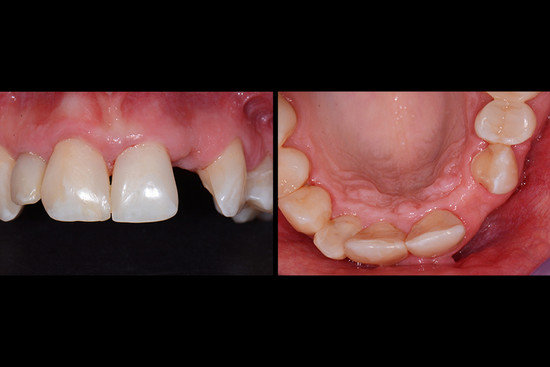 Odbudowa z protezą przytwierdzaną żywicą po 3 miesiącach od ekstrakcji zęba.