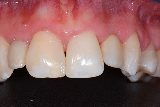 *W tym przypadku Geistlich Bio-Gide® Perio (16×22 mm) przycięty był do kształtu Geistlich Bio-Gide® Shape.