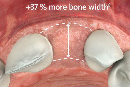 • Bez wsparcia kości, tkanka policzkowa oraz tkanka miękka w zębodole zapada się. Naturalna formacja nowej kości w zębodole nie kompensuje utraty objętości wyrostka zębodołowego.