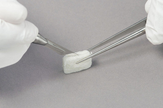 Geistlich Fibro-Gide® może być przycinana zarówno na mokro jak i na sucho. W tym celu można użyć nożyczek i/lub skalpela. Użycie skalpela jest zalecane do cięcia na sucho.
