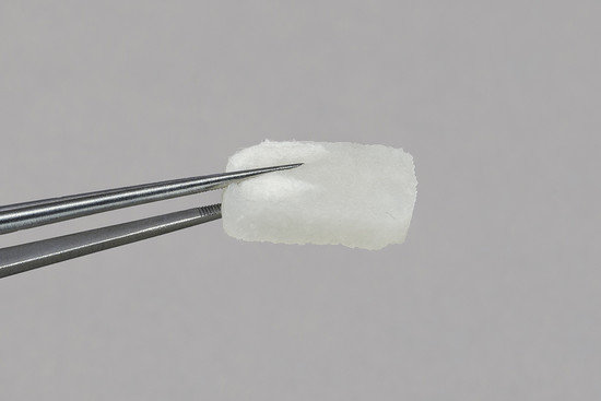 Geistlich Fibro-Gide® nabiera właściwości adhezyjnych po nasiąknięciu krwią i utrzymuje stabilną pozycję po założeniu. Stabilizacja macierzy przez jej przyszycie do leżącej poniżej tkanki zazwyczaj nie jest potrzebne.