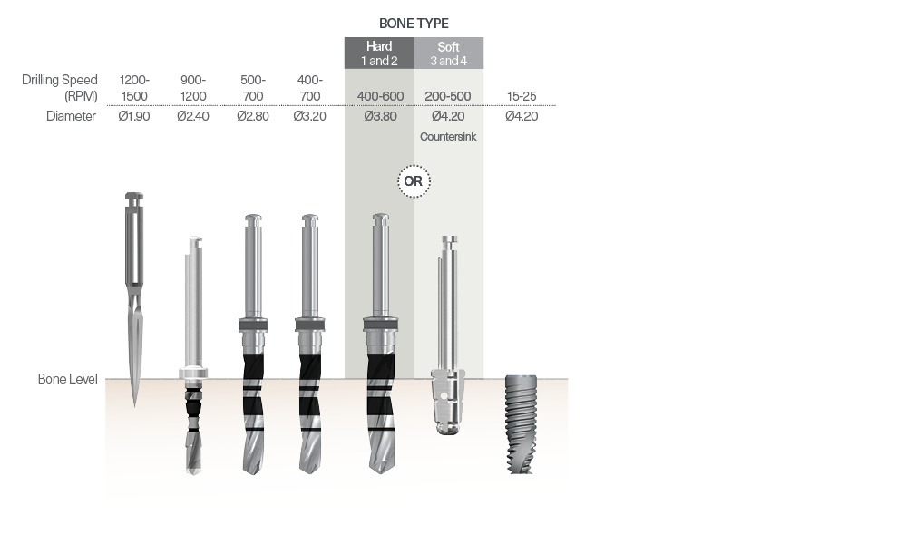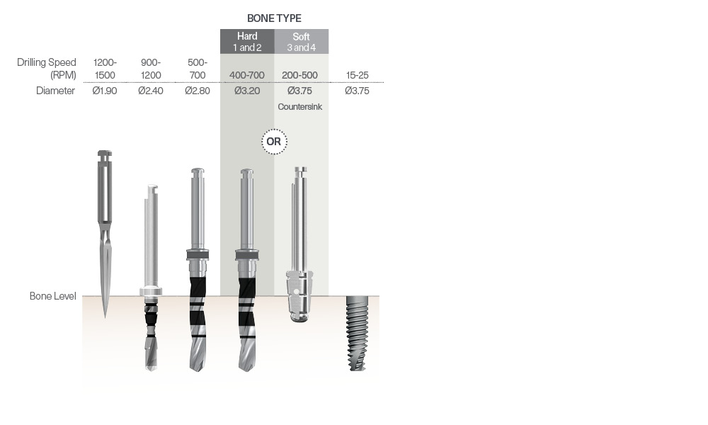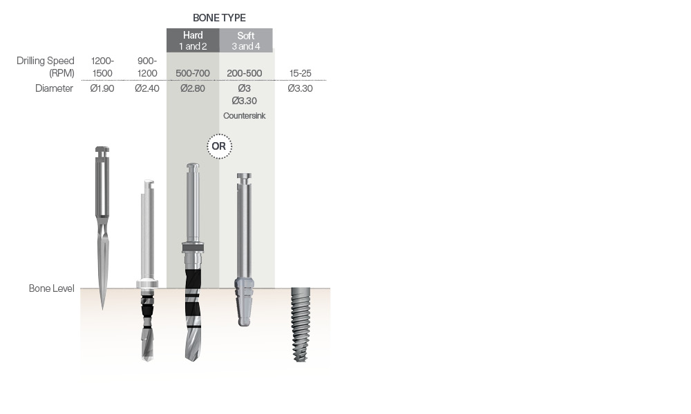 Nie należy używać wiertła ostatecznego dla typów kości 3 i 4. Procedury rekomendowane przez MIS są jedynie wskazówką i nie zastępują profesjonalnej oceny sytuacji klinicznej implantologa.