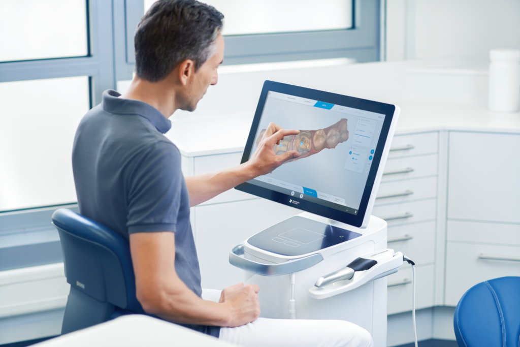 Primescan jest narzędziem opracowanym dla nowoczesnej stomatologii i z myślą o stomatologu. Wyposażony został w touchpad i szerokokątny ekran dotykowy 16:9, co umożliwia wyjątkowo intuicyjną i ergonomiczną pracę.