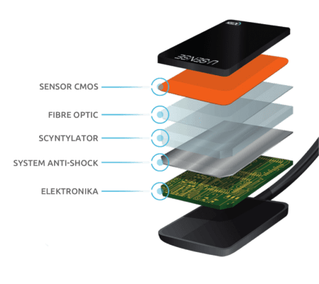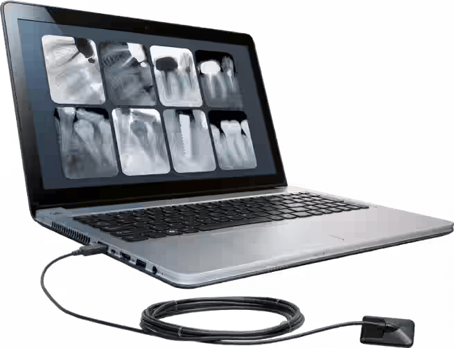 Zaokrąglone rogi i płaski kształt zmniejszają dyskomfort pacjenta, a długi – 3 metrowy przewód podłączany bezpośrednio do USB oraz biała obwódka na sensorze sprawiają, że umieszczenie czujnika w odpowiednim miejscu jamy ustnej jest jeszcze łatwiejsze.