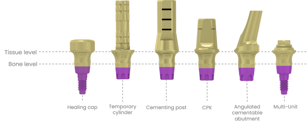 System ostatecznych filarów jednoczasowych w portfolio MIS Implants Technologies, który umożliwia wykonanie pełnej procedury protetycznej wraz z odbudową, zachowując bezpieczną odległość od kości przy różnej wysokości tkanek miękkich.