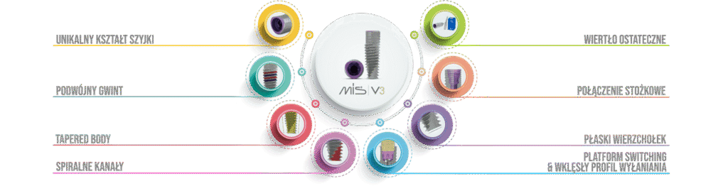 Implanty V3 umożliwiają „platform switching”, dzięki któremu możliwe jest zachowanie kości wyrostka wokół implantu i zapewnienie doskonałego uszczelnienia dziąsłowego dla uzyskania dużej ilości tkanki miękkiej.