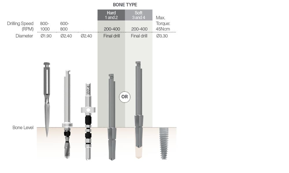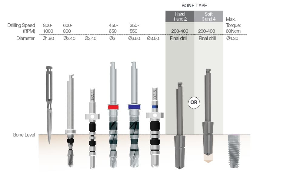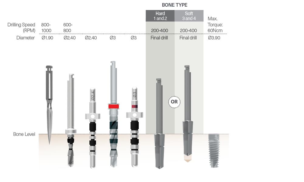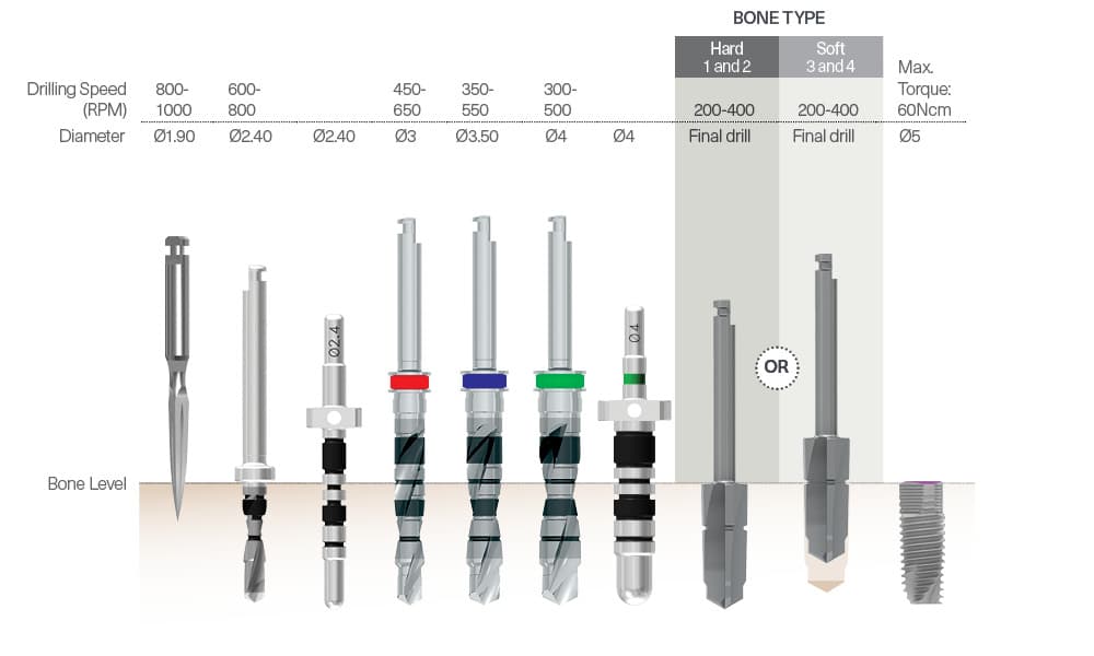 W zestawie z każdym implantem V3 znajduje się także wiertło ostateczne odpowiednie do wszystkich procedur wiercenia.