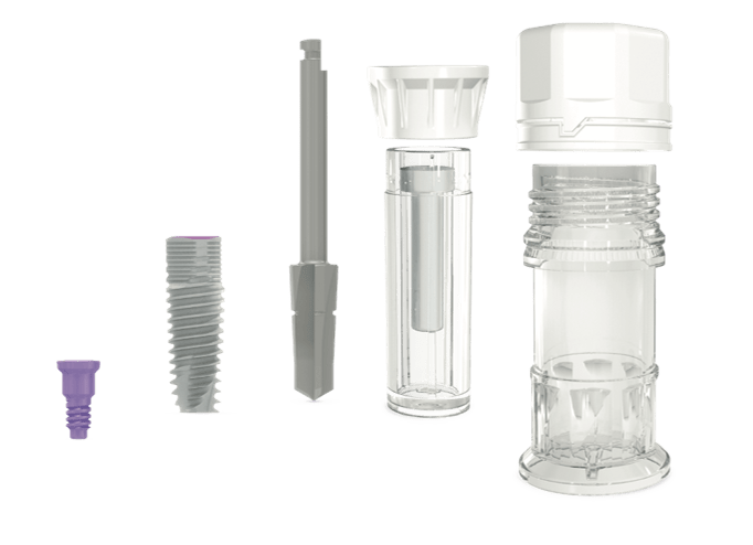 W zestawie z każdym implantem V3 znajduje się także sterylna śruba zamykająca i wiertło ostateczne odpowiednie do wszystkich procedur wiercenia. Sterylny kanał wewnętrzny wyposażony jest w specjalny rękaw tytanowy zapobiegający rotacji, który zapewnia łatwe dopasowanie między narzędziem wszczepiającym a implantem.