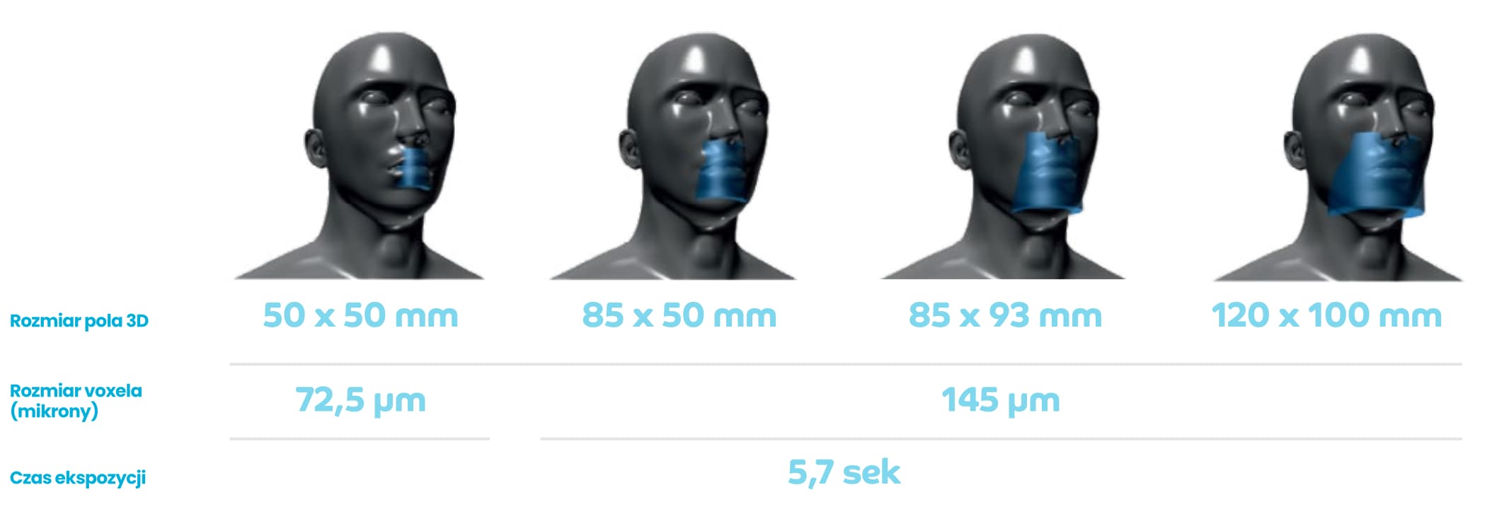 Dzięki minimalnej wielkości woksela wynoszącej 72,5 μm (145 μm przy największym polu 120×100 mm) uzyskuje się szczegółowe, trójwymiarowe rekonstrukcje, w których można zobaczyć najmniejsze elementy anatomiczne. Dodatkowo ulepszone filtry S MAR-T, pozwalają na redukcję artefaktów od metalowych obiektów przed, jak również już po wykonaniu badania, dzięki czemu jeszcze lepiej wspierają ocenę zdjęć i sytuacji klinicznej.