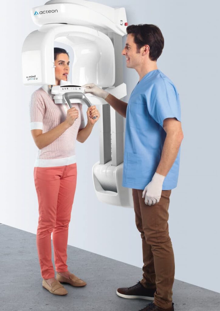 X-MIND® prime 2 został zaprojektowany specjalnie tak, aby skrócić czas pozycjonowania pacjenta co pozwala zmaksymalizować wydajność. Aparat pozwala na naturalne ustawianie pacjenta twarzą w twarz z lekarzem, w czym dodatkowo pomagają linie laserowe.