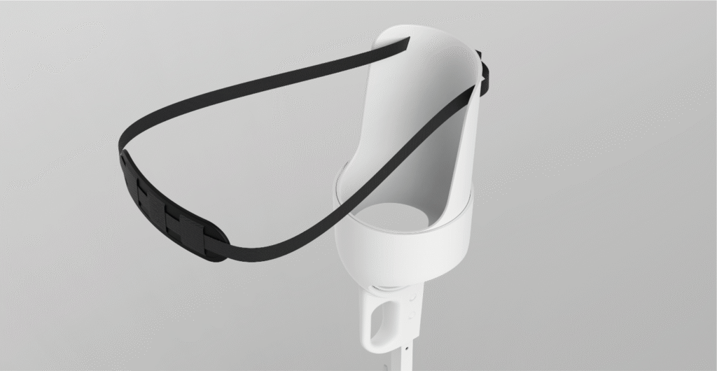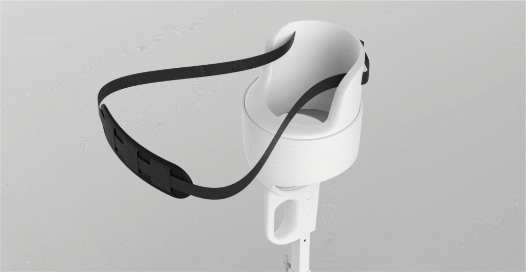 Pozycjoner w standardzie posiada największą wkładkę pozwalającą na badanie pacjenta do 15 kg oraz podbródek.